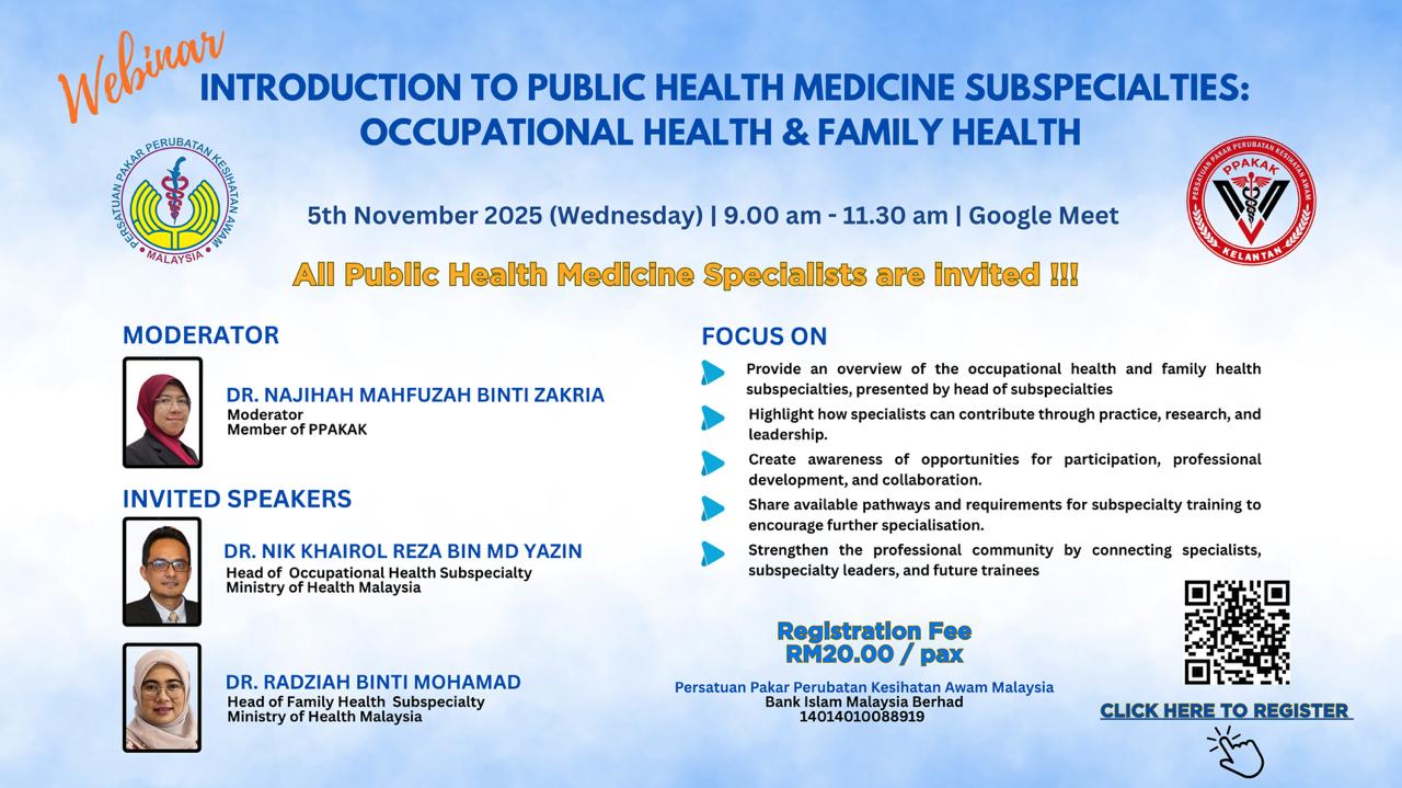 Webinar Introduction to Public Health Medicine Subspecialties: Occupational Health & Family Health