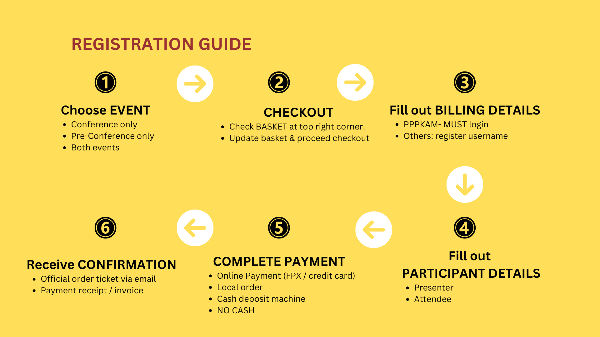 - PPPKAM Members – First, log in to this website then proceed with “Click Here to Register“, to get the special rate.