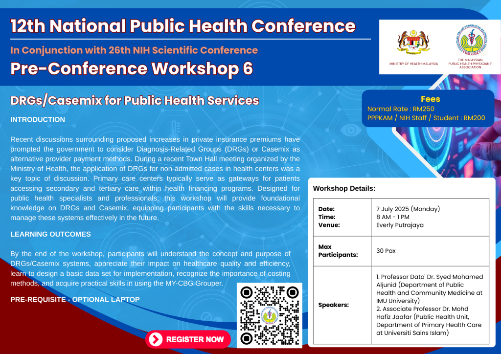 Recent discussions surrounding proposed increases in private insurance premiums have prompted the government to consider Diagnosis-Related Groups (DRGs) or Casemix as alternative provider payment methods. During a recent Town Hall meeting organized by the Ministry of Health, the application of DRGs for non-admitted cases in health centers was a key topic of discussion. Primary care centers typically serve as gateways for patients accessing secondary and tertiary care within health financing programs. Designed for public health specialists and professionals, this workshop will provide foundational knowledge on DRGs and Casemix, equipping participants with the skills necessary to manage these systems effectively in the future.